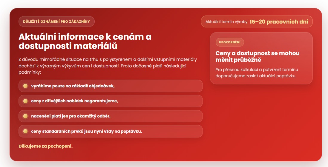 Na zakázku vyrábíme fasádní profily a dekorace dle požadavků zákazníka.